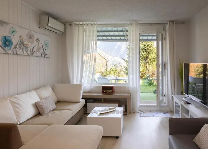 Das 1-Zimmer-Apartment Lilija Bovec bietet Blick auf den Garten und liegt 13 Minuten Gehweg vom Bovec Rafting Team entfernt. Das 50 m² große Apartment bietet eine Terrasse mit Blick auf die Berge.